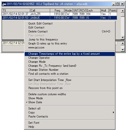 これで 「C: Program File/N1MM Logger/KCJ.sec を読みました」と表示されれば