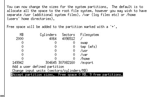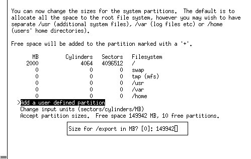 その他に /export に 残りを割当てることにします。 これで raid5 を構成すると、 149942 x 3 = 450 GB くらいになるはずです。