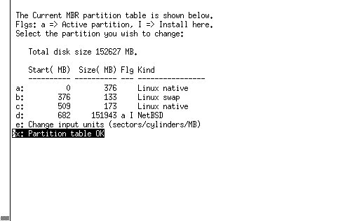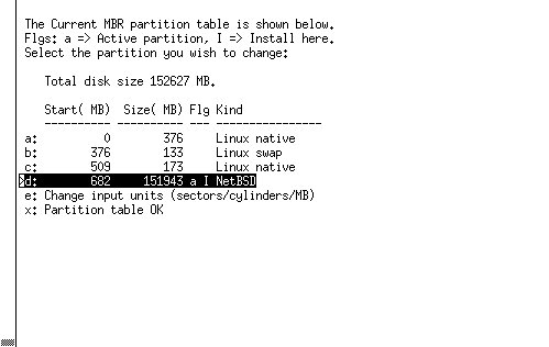 d: (四番目) が a (activ) I (Install) NetBSD に変更されました