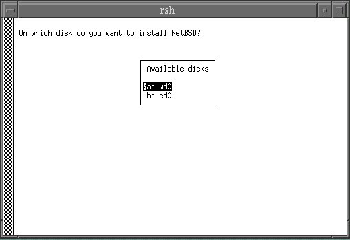 いま、機械には wd0 と sd0 が見えていますが、どちらに設置しますか ?